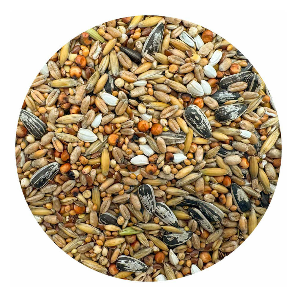 Blandingen er egnet som basisfôr, og gir hagen liv og fuglesang uten at man trenger å velge de mest eksklusive frøtypene.