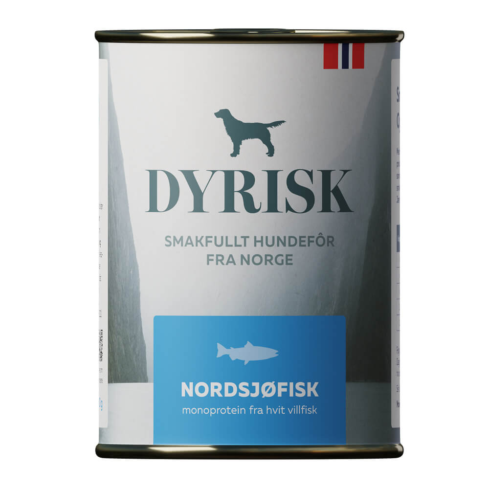 Dyrisk Nordsjøfisk 400g er et singel protein våtfôr, som vil si at den kun inneholder protein av fisk som hvit fisk og makrell fra Nordsjøen.