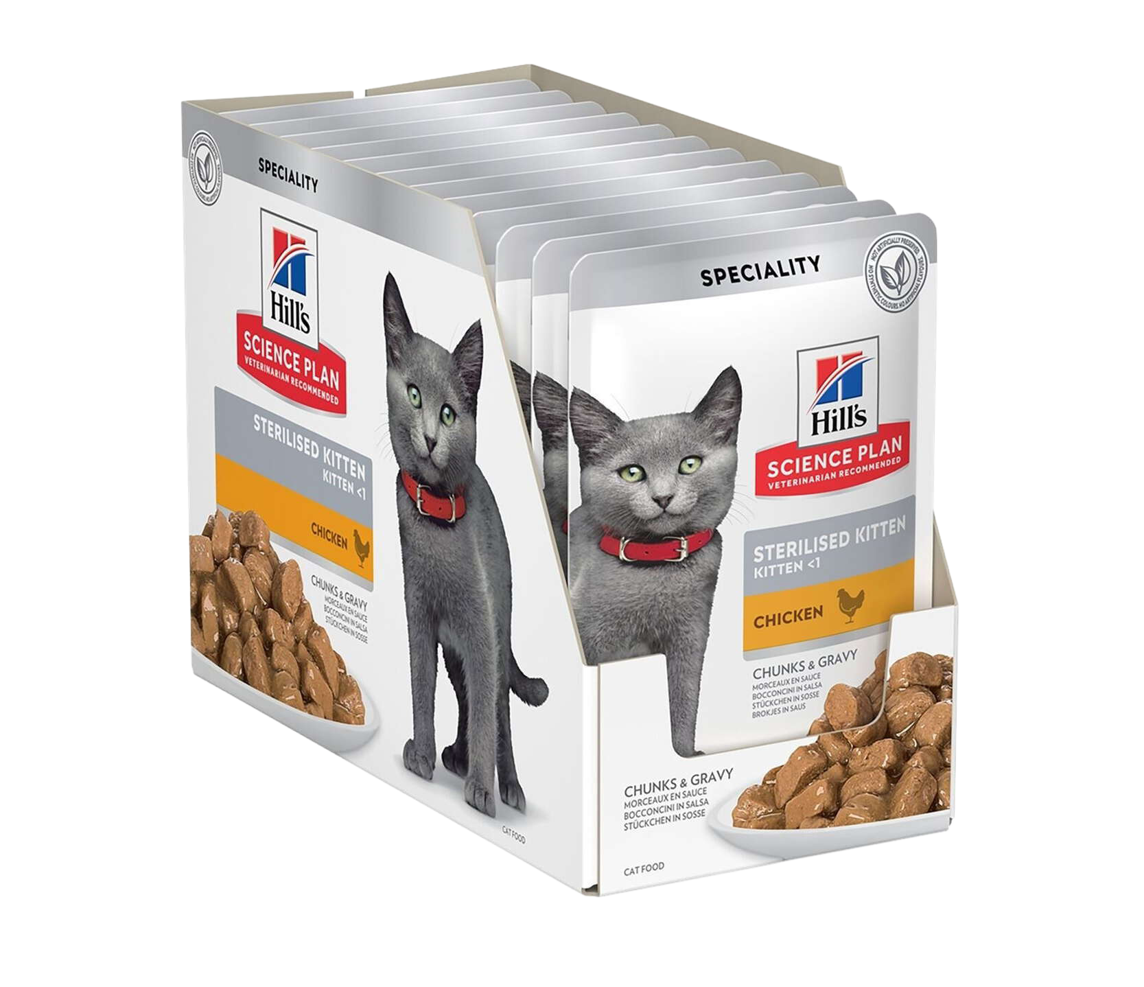 Hill’s SCIENCE PLAN Sterilised Kitten kattungefôr ble skapt med Hill’s unike forståelse for kastrerte kattungers spesielle behov. Det bidrar med proteiner av høy kvalitet for muskelutvikling, sammen med kontrollert fettinnhold for å forebygge risikoen for overvekt etter sterilisering. I tillegg fremmer den unike blandingen av antioksidanter et sunt immunsystem for å støtte din kattunges vekst.